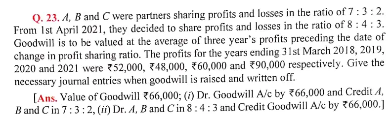 Solution of Question Number 23 Change in Profit Sharing Ratio DK Goel for 2024 Examinations