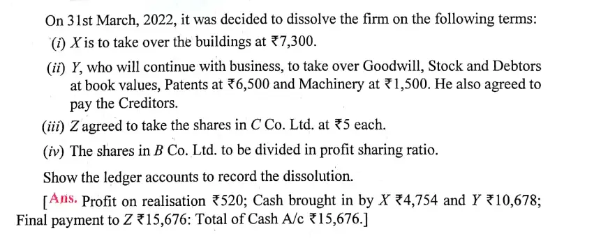 DK Goel Solutions Q 23 Chapter 5 Dissolution Class 12 CBSE [2023-24]