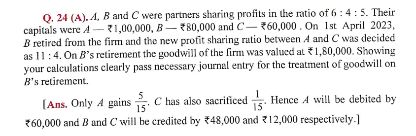 Solution of Question Number 24 Retirement or Death of a Partner DK Goel for 2024 Examinations