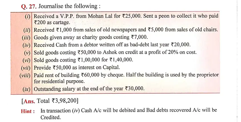 Solution of Question Number 27 Books of Original Entry-Journal DK Goel for 2024 Examinations