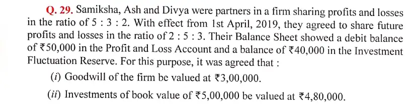 Solution of Question Number 29 Change in Profit Sharing Ratio DK Goel for 2024 Examinations