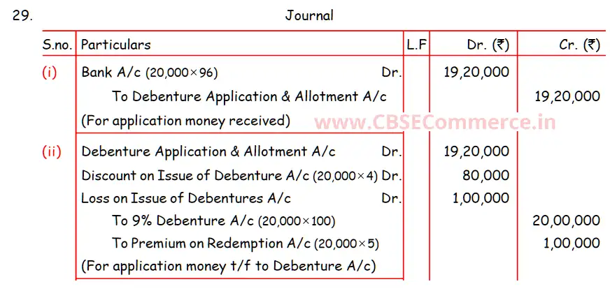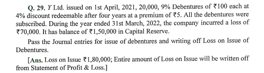 Solution of Question Number 29 Accounting for Companies – Issue of Debentures DK Goel for 2024 Examinations