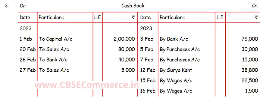 Solution of Question Number 3 Books of Original Entry-Cash Book DK Goel for 2024 Examinations