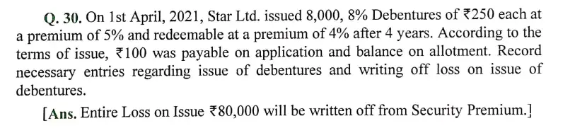 Solution of Question Number 30 Accounting for Companies – Issue of Debentures DK Goel for 2024 Examinations