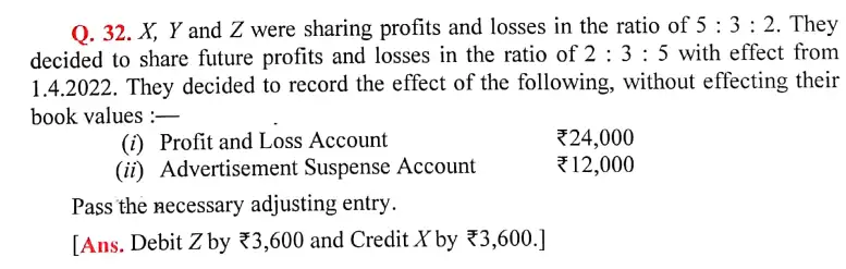Solution of Question Number 32 Change in Profit Sharing Ratio DK Goel for 2024 Examinations