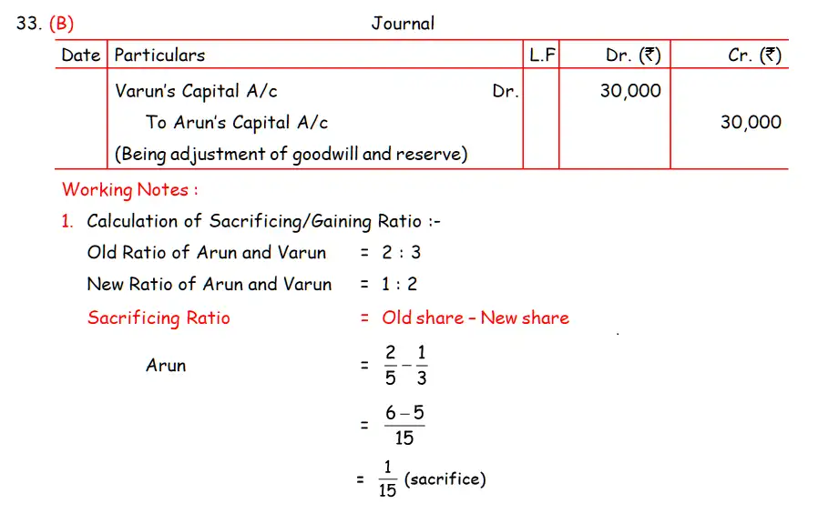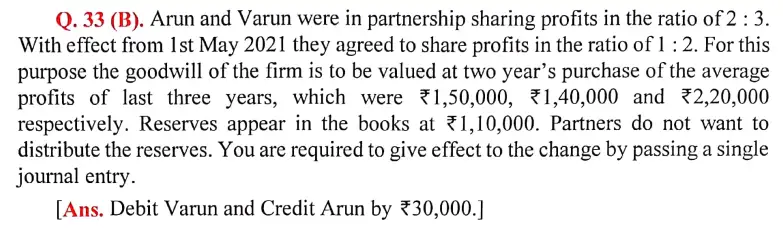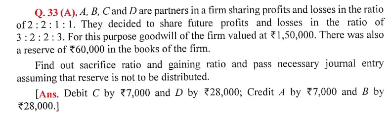 Solution of Question Number 33 Change in Profit Sharing Ratio DK Goel for 2024 Examinations