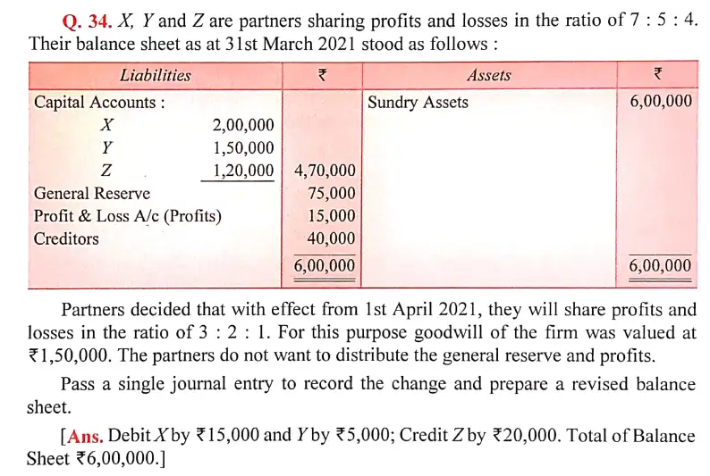 Solution of Question Number 34 Change in Profit Sharing Ratio DK Goel for 2024 Examinations