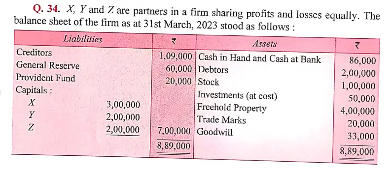 Solution of Question Number 34 Retirement or Death of a Partner DK Goel for 2024 Examinations