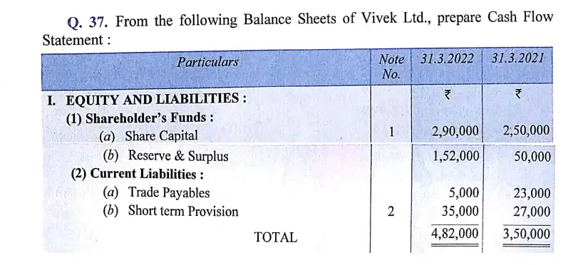 Solution of Question Number 37 Cash Flow Statement DK Goel for 2024 Examinations