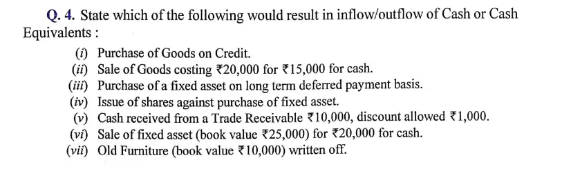 Solution of Question Number 4 Cash Flow Statement DK Goel for 2024 Examinations