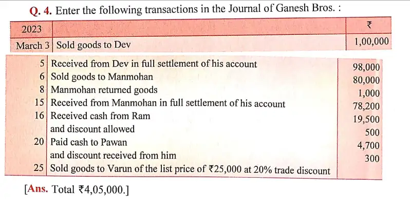 Here is the Solution of Q 4 Books of Original Entry-Journal DK Goel Class 11 Accountancy 2023-24 for the CBSE Board.