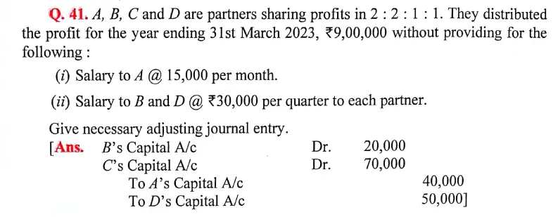 Solution of Question Number 41 Accounting for Partnership Firms – Fundamentals DK Goel for 2024 Examinations