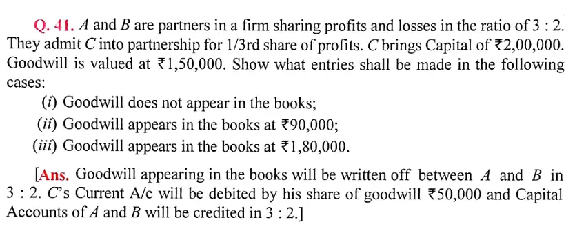 Solution of Question Number 41 Admission of a Partner DK Goel for 2024 Examinations