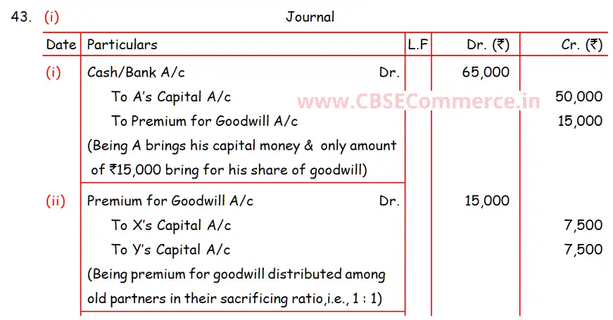 Solution of Question Number 43 Admission of a Partner DK Goel for 2024 Examinations
