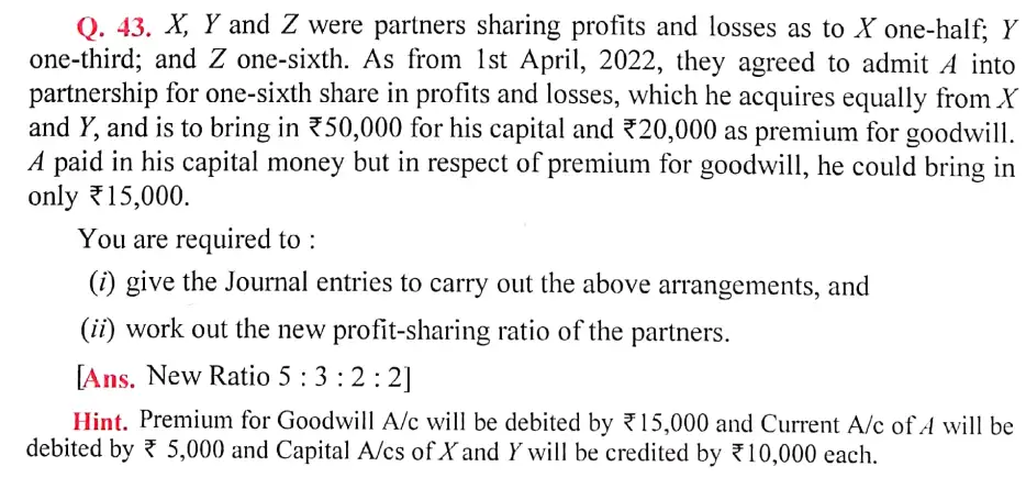 Here is the Solution of Q 43 Admission of a Partner DK Goel Class 12 Accountancy 2023-24 for the CBSE Board.