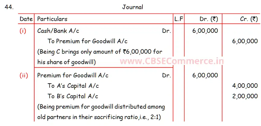 Solution of Question Number 44 Admission of a Partner DK Goel for 2024 Examinations
