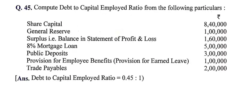 Solution of Question Number 45 Accounting Ratios DK Goel for 2024 Examinations