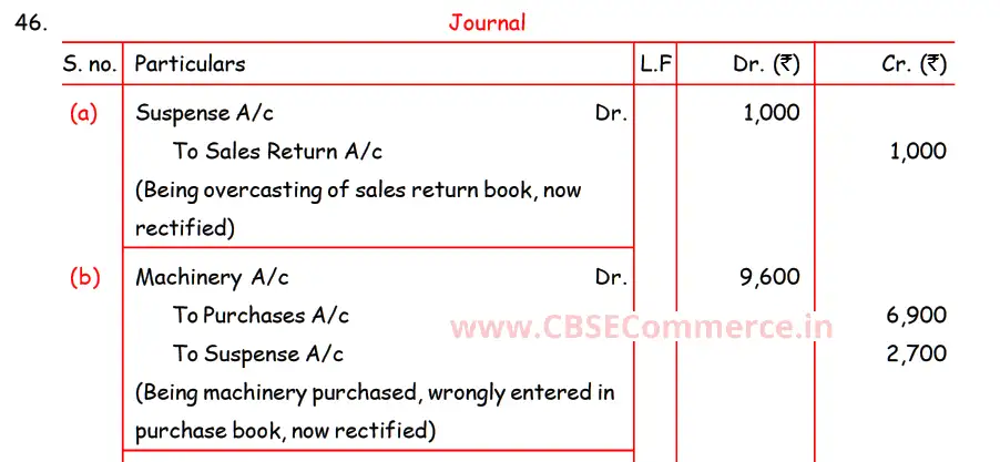 Here is the Solution of Q 46 Rectification of Errors DK Goel Class 11 Accountancy 2023-24 for the CBSE Board.