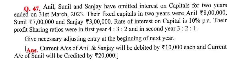 Solution of Question Number 47 Accounting for Partnership Firms – Fundamentals DK Goel for 2024 Examinations