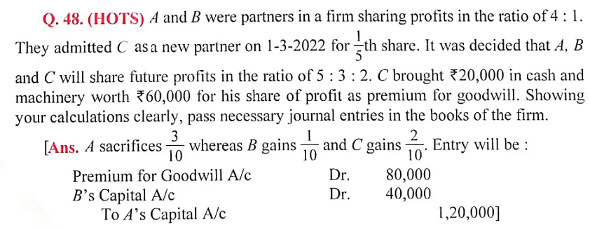 Solution of Question Number 48 Admission of a Partner DK Goel for 2024 Examinations