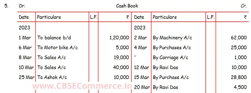 Solution of Question Number 5 Books of Original Entry-Cash Book DK Goel for 2024 Examinations