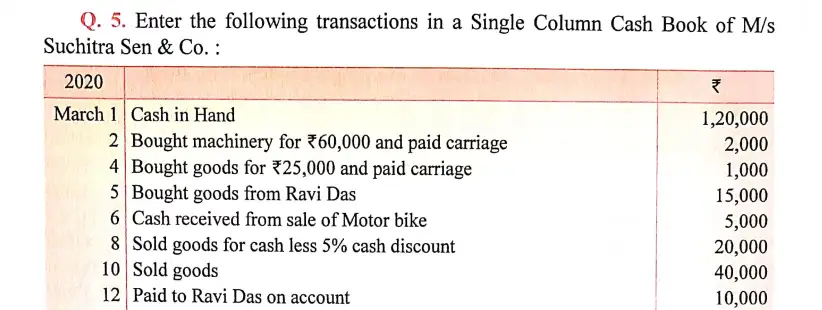 Here is the Solution of Q 5 Books of Original Entry-Cash Book DK Goel Class 11 Accountancy 2023-24 for the CBSE Board.