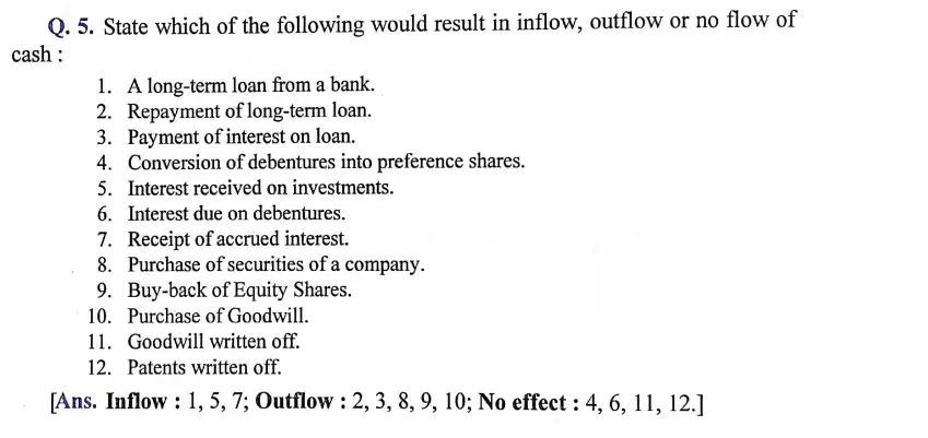 Solution of Question Number 5 Cash Flow Statement DK Goel for 2024 Examinations