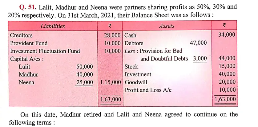 Solution of Question Number 51 Retirement or Death of a Partner DK Goel for 2024 Examinations