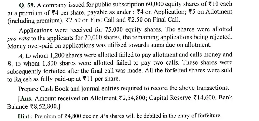 Solution of Question Number 59 Accounting for Companies -Issue of Shares DK Goel for 2024 Examinations