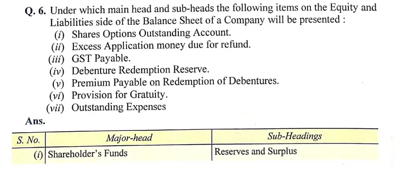 Solution of Question Number 6 Financial Statements of Companies DK Goel for 2024 Examinations