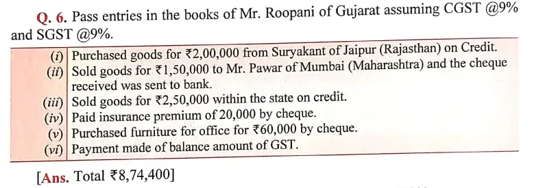 Solution of Question Number 6 Accounting for Goods and Service Tax-GST DK Goel for 2024 Examinations