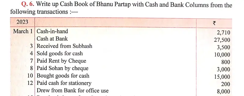 Solution of Question Number 6 Books of Original Entry-Cash Book DK Goel for 2024 Examinations