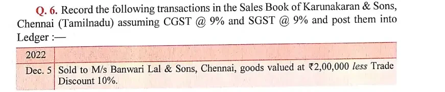 Solution of Question Number 6 Ledger DK Goel for 2024 Examinations