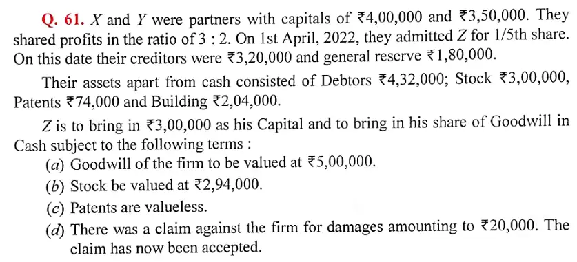 Solution of Question Number 61 Admission of a Partner DK Goel for 2024 Examinations