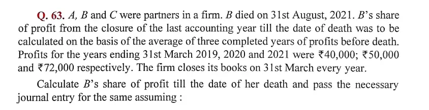 Solution of Question Number 63 Retirement or Death of a Partner DK Goel for 2024 Examinations