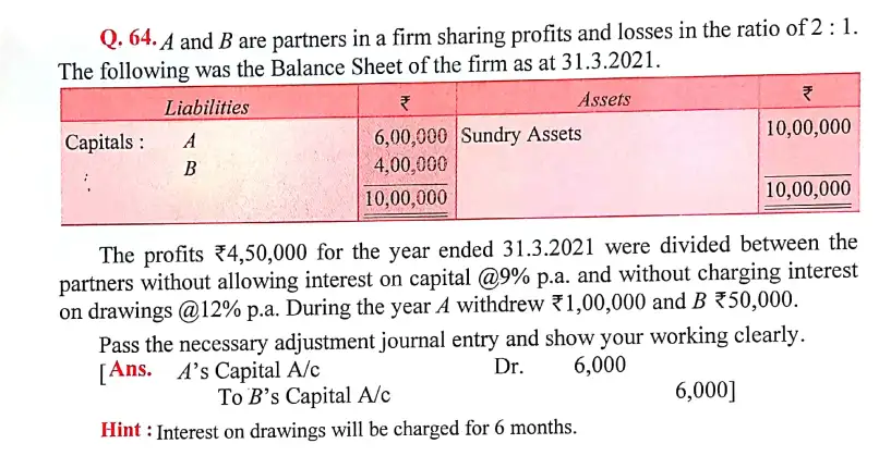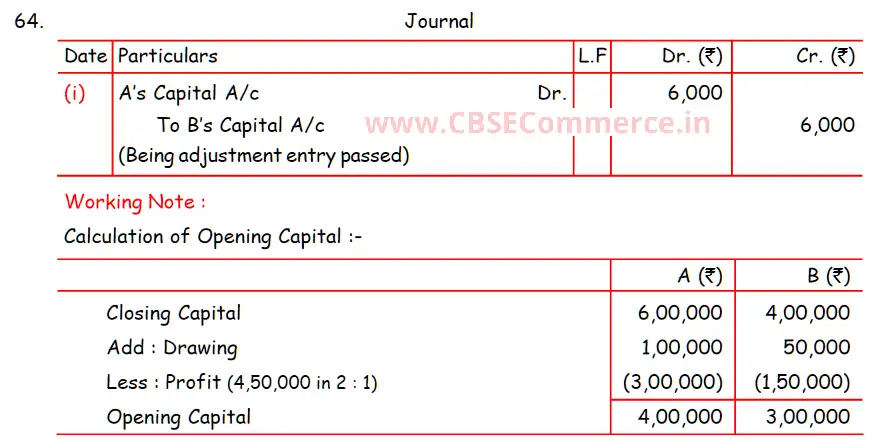 Solution of Question Number 64 Accounting for Partnership Firms – Fundamentals DK Goel for 2024 Examinations