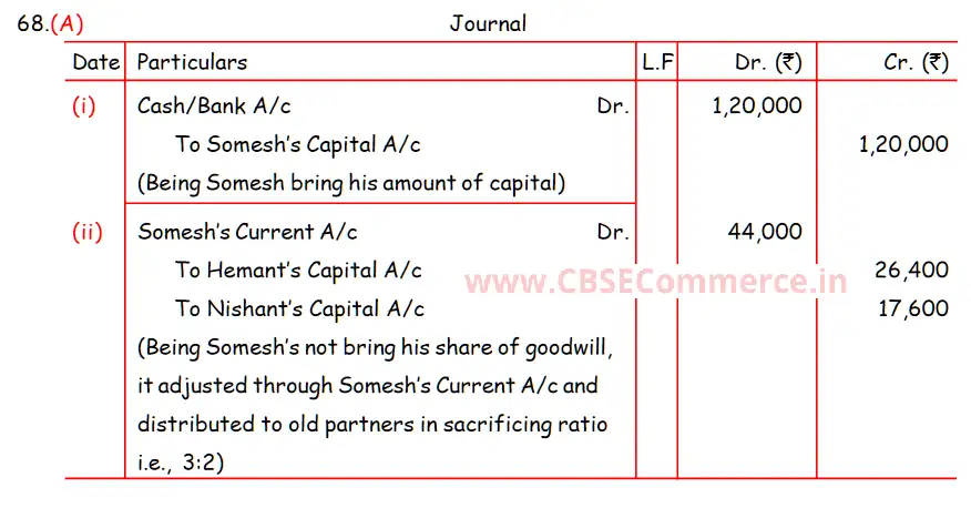 Solution of Question Number 68 Admission of a Partner DK Goel for 2024 Examinations