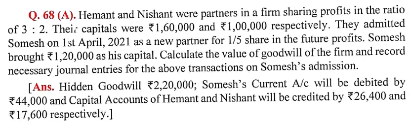 Here is the Solution of Q 68 Admission of a Partner DK Goel Class 12 Accountancy 2023-24 for the CBSE Board.