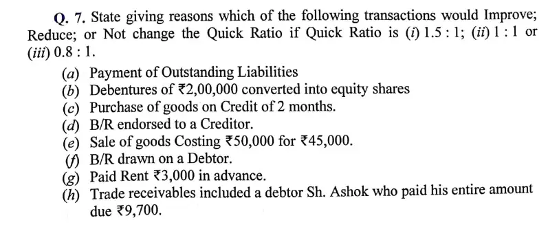 Solution of Question Number 7 Accounting Ratios DK Goel for 2024 Examinations