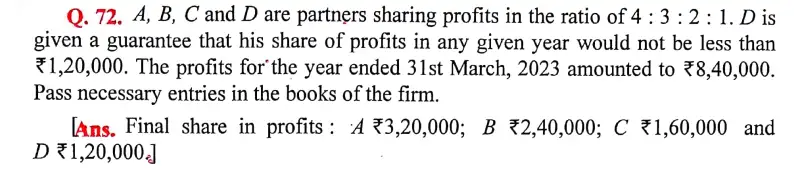 Solution of Question Number 72 Accounting for Partnership Firms – Fundamentals DK Goel for 2024 Examinations