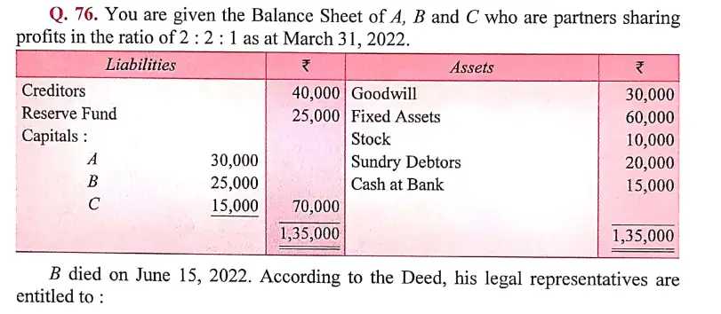 Solution of Question Number 76 Retirement or Death of a Partner DK Goel for 2024 Examinations