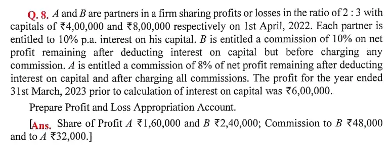Solution of Question Number 8 Accounting for Partnership Firms – Fundamentals DK Goel for 2024 Examinations