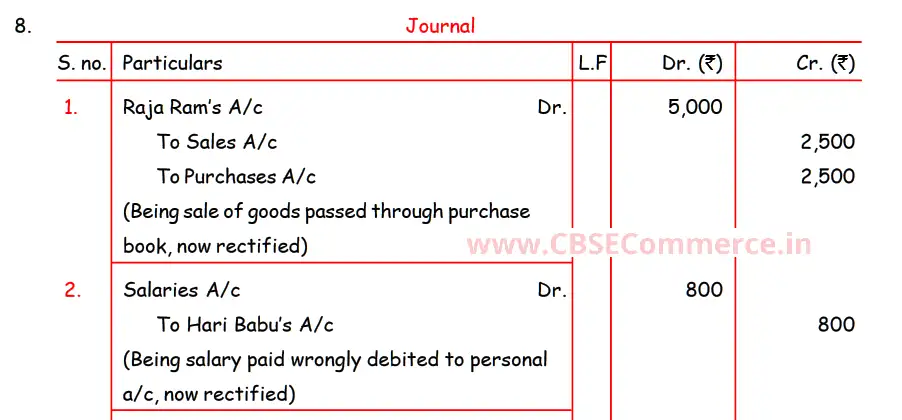 Here is the Solution of Q 8 Rectification of Errors DK Goel Class 11 Accountancy 2023-24 for the CBSE Board.