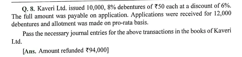 Solution of Question Number 8 Accounting for Companies – Issue of Debentures DK Goel for 2024 Examinations