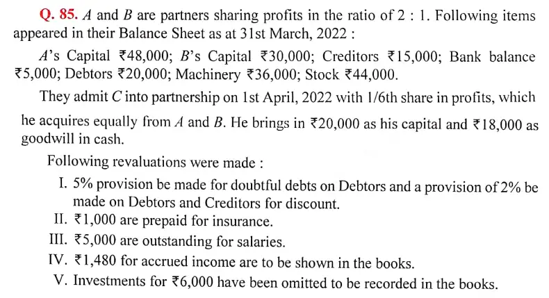 Solution of Question Number 85 Admission of a Partner DK Goel for 2024 Examinations