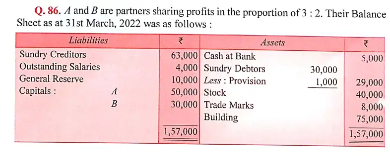 Here is the Solution of Q 86 Admission of a Partner DK Goel Class 12 Accountancy 2023-24 for the CBSE Board.