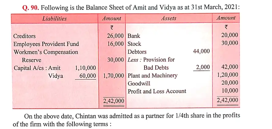 Solution of Question Number 90 Admission of a Partner DK Goel for 2024 Examinations
