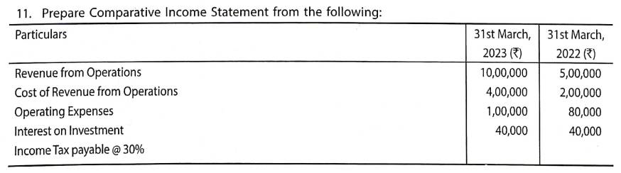 Solution of Question Number 11 Comparative Statements and Common-Size Statements TS Grewal 2023-24 Edition [ISC Board]