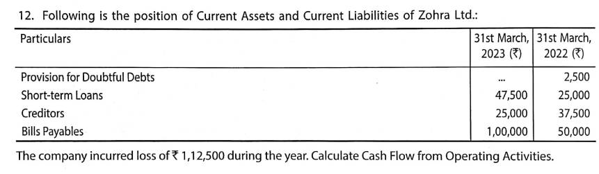 Here is the Solution of Q 12 Cash Flow Statements TS Grewal Class 12 ISC Board Accountancy Book 2023-24 Edition.