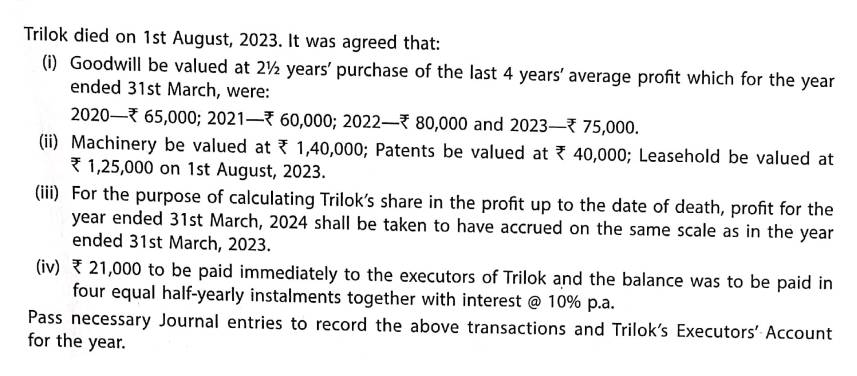 [ISC] Q. 12 Solution of Death of Partner TS Grewal ISC 2023-24 Edition